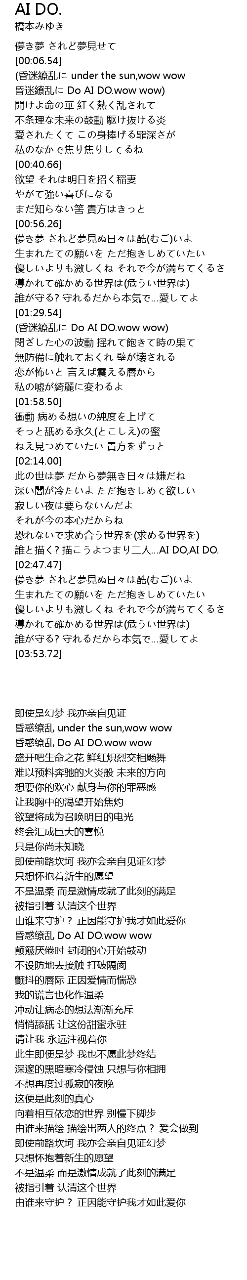 | [01:34.48] | (昏迷繚乱に Do AI DO.wow wow) |