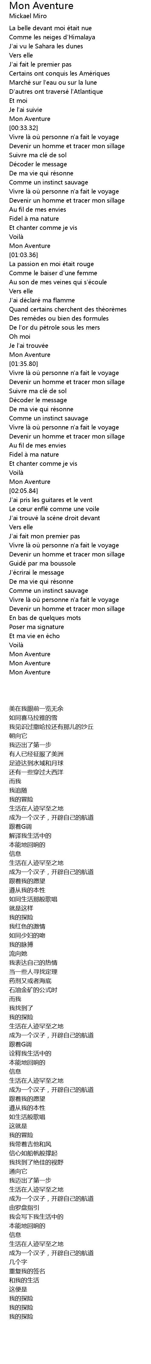 | [01:38.49] | Vivre la ou personne n' a fait le voyage |