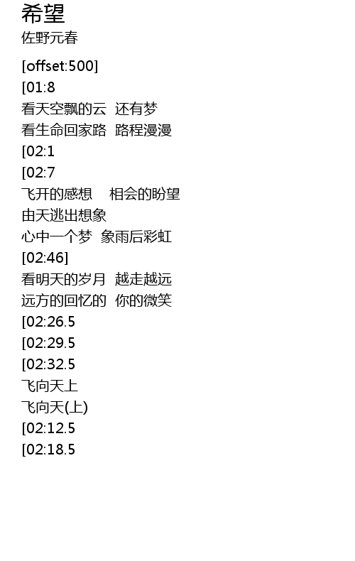 [01:1.5][02:32.5] xī wàng de chì bǎng yì tiān zhōng zhāng kāi