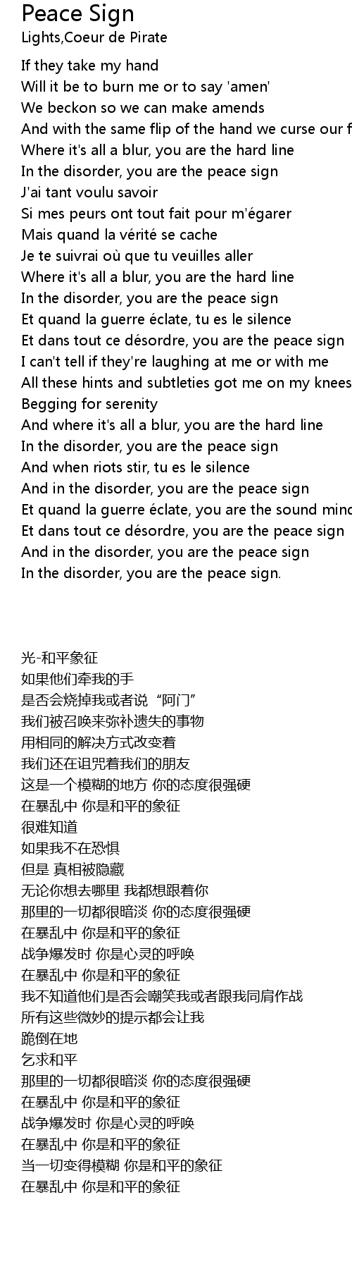 | [02:33.400] | Et dans tout ce de sordre, you are the peace sign |