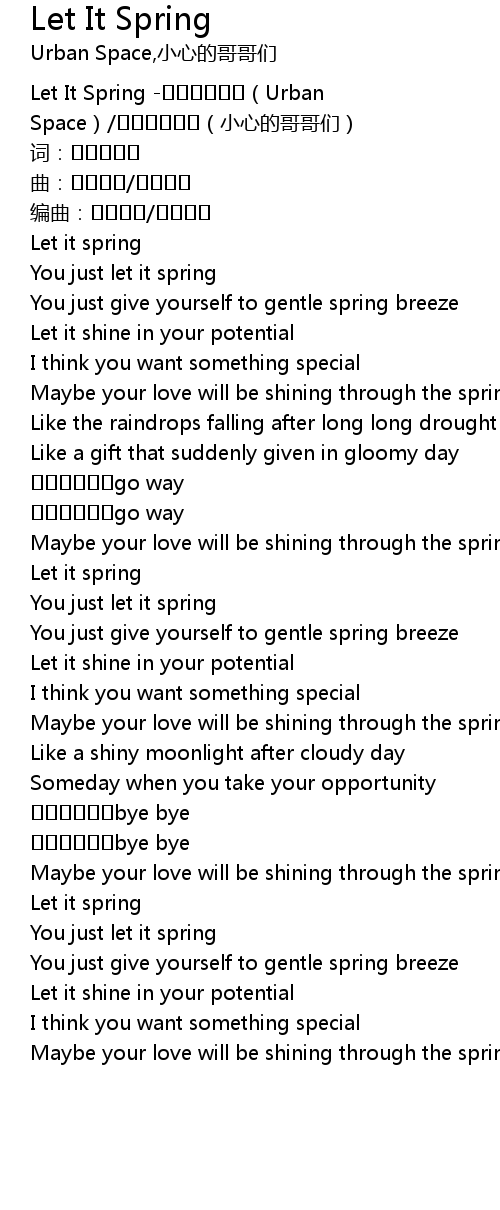 | [00:01.37] | Let It Spring -어반스페이스(Urban Space)/소심한오빠들(小心的哥哥们) |