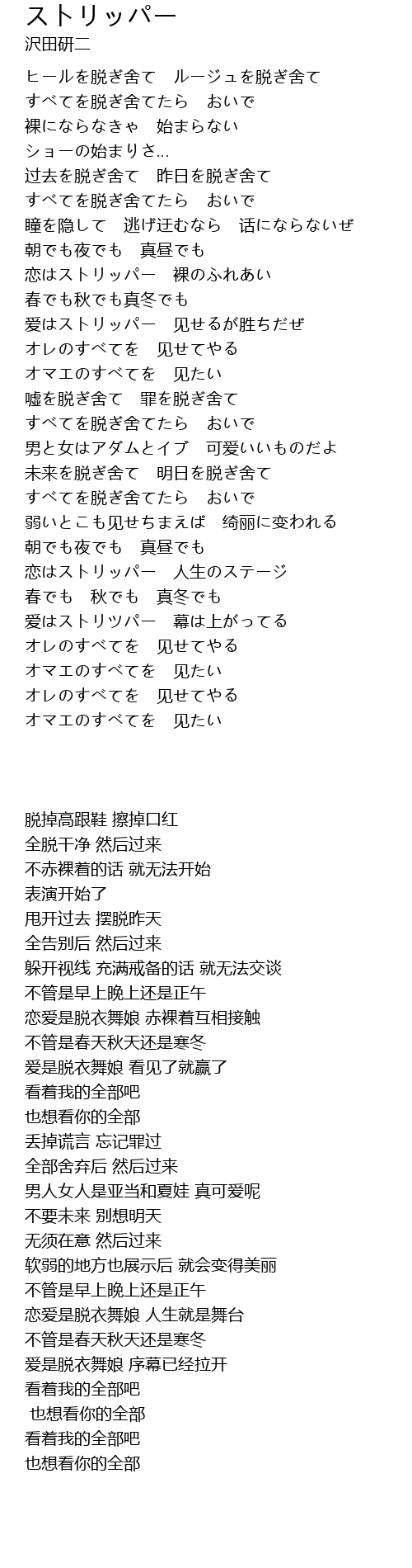 | [01:00.000] | 恋はストリッパー 裸のふれあい |