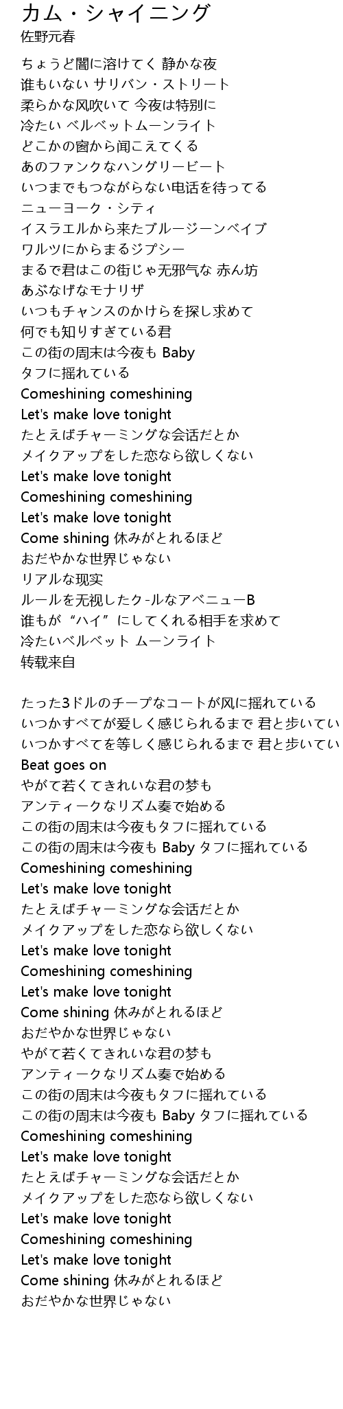 | Song | カム・シャイニング |