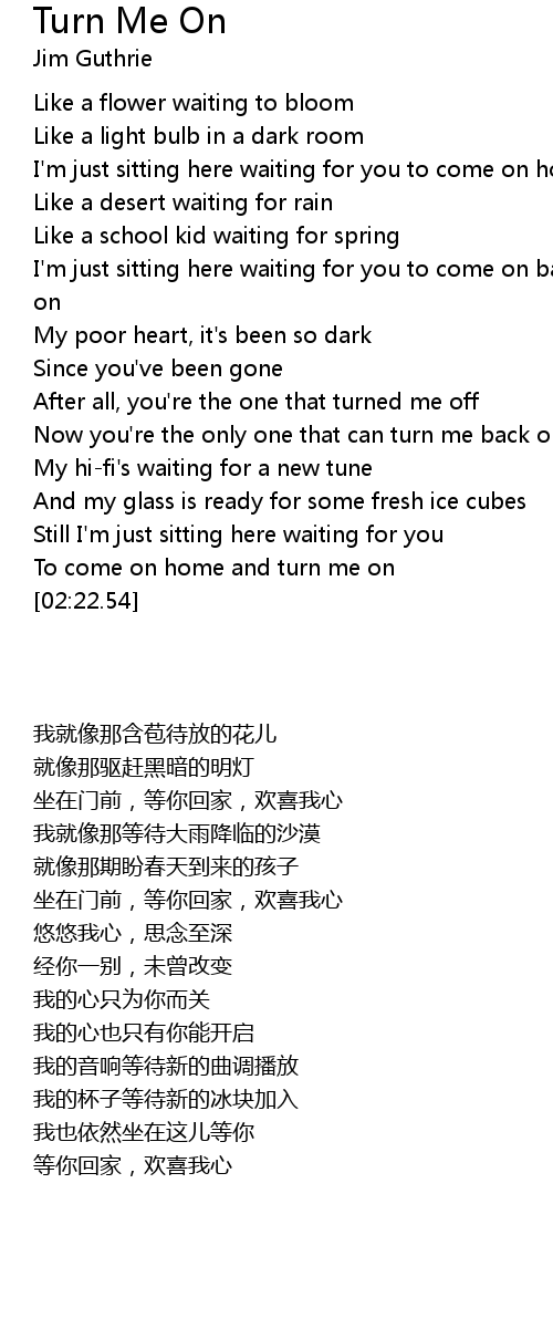 I'm just sitting here waiting for you to come on home and turn me on |