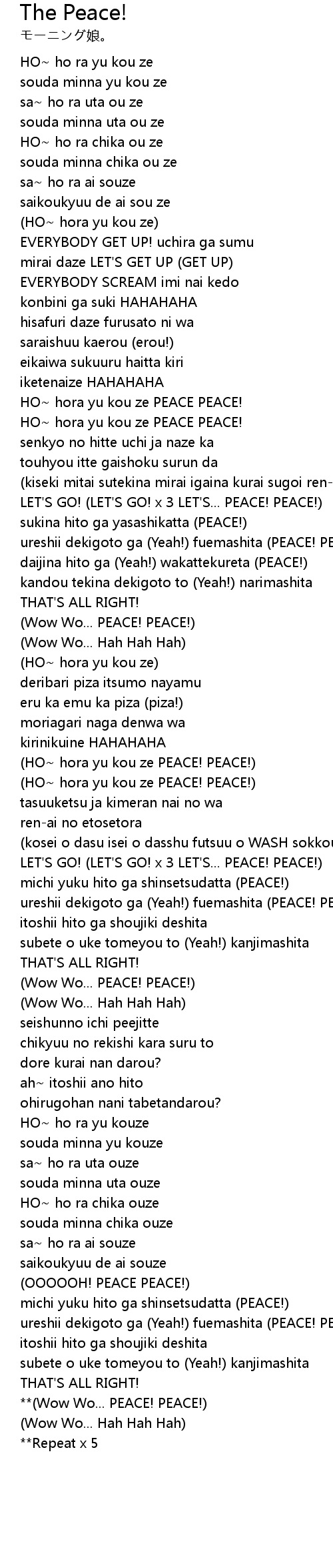(HO~ hora yu kou ze PEACE! PEACE!) |