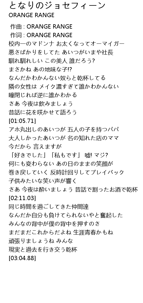 | [00:01.00] | 作词 : ORANGE RANGE |