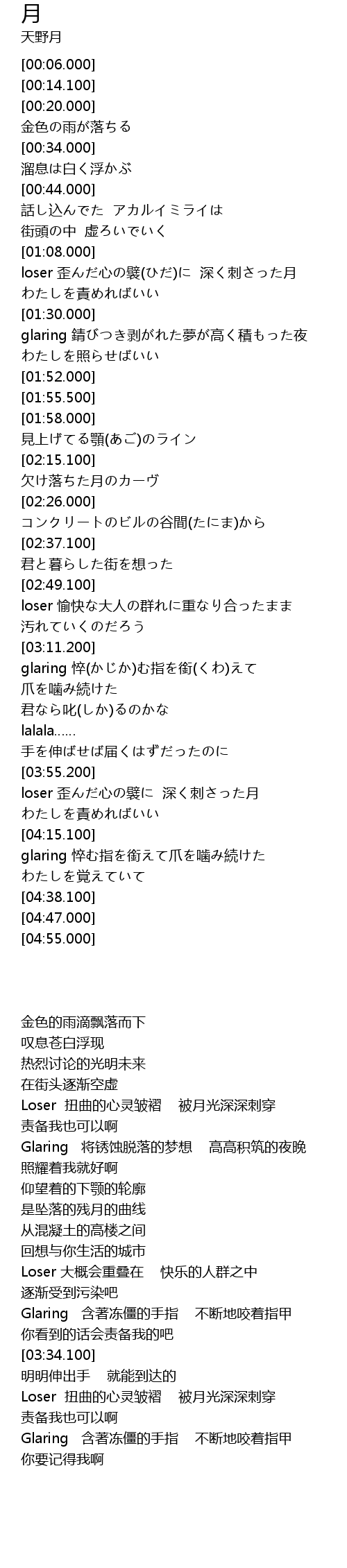 | [03:55.500] | loser 歪んだ心の襞に 深く刺さった月 |