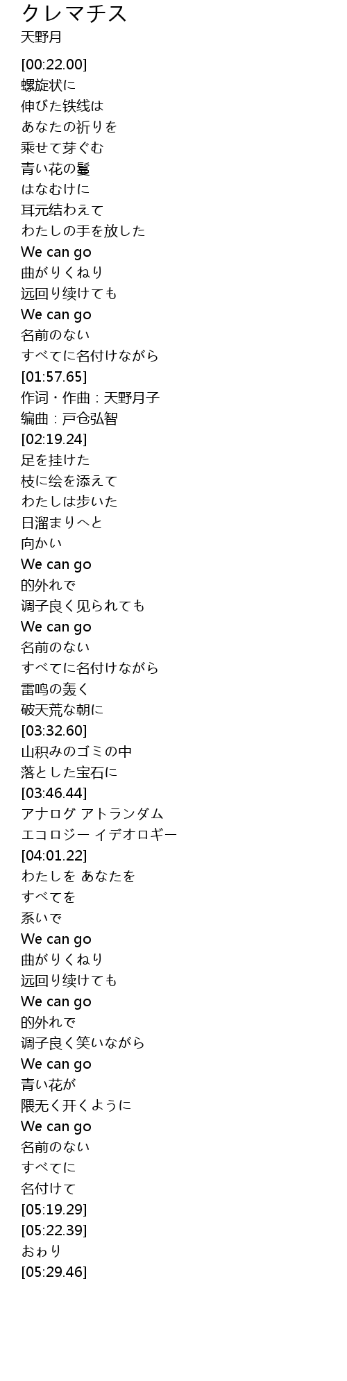 | [02:04.84] | 作词・作曲:天野月子 |