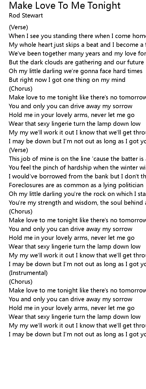 Make love to me tonight like there's no tomorrow |