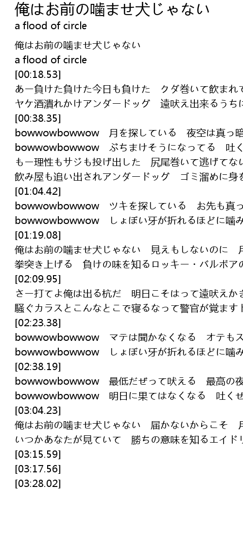 | [02:56.95] | bowwowbowwow 明日に果てはなくなる 吐くぜ 思いの丈を吐くぜ |