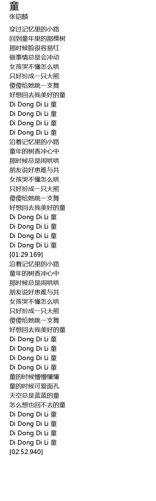 | [02:10.900] | tóng de shí hòu měng měng dǒng dǒng |