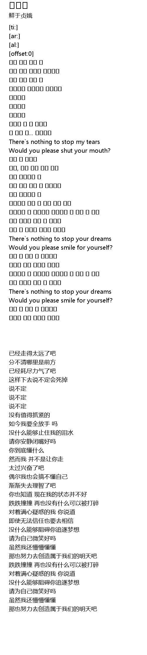 | [01:17.55] | There s nothing to stop my tears |
