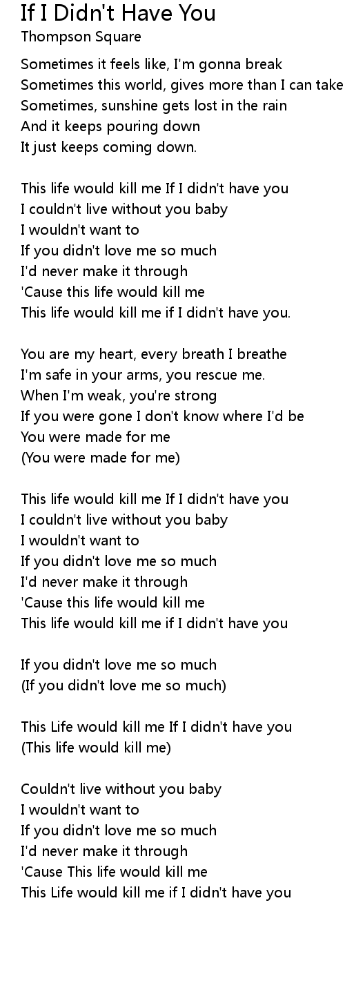 This Life would kill me If I didn't have you |