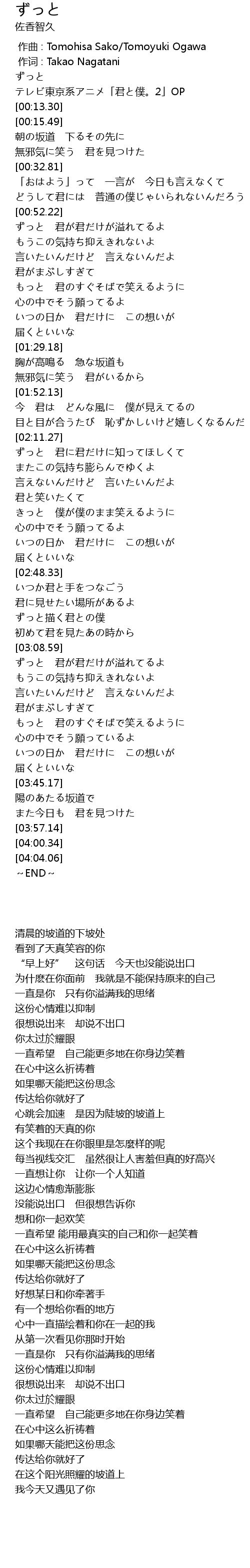 | [00:02.50] | テレビ東京系アニメ「君と僕。2」OP |