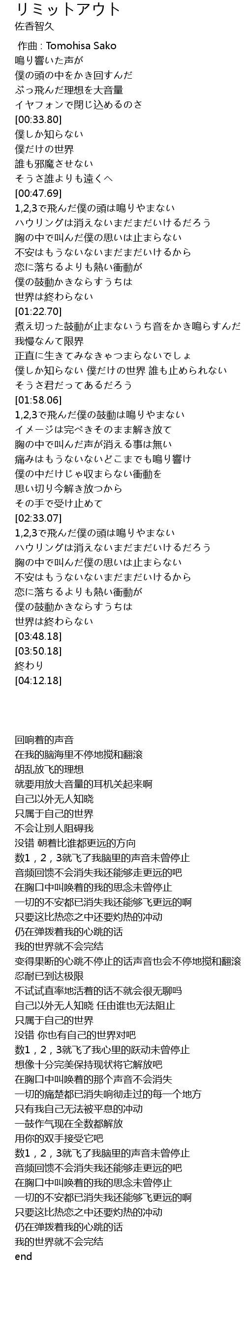 | [03:43.09] | 世界は終わらない |