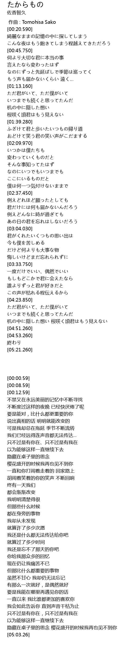 | [00:00.00] | zuò qǔ : Tomohisa Sako |