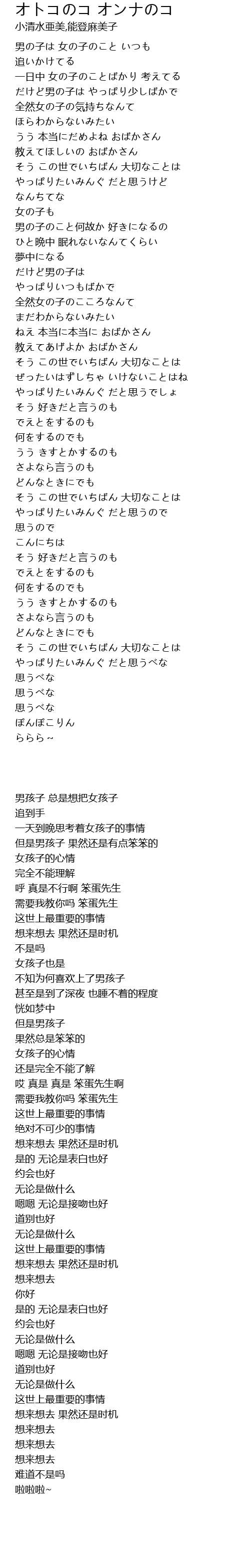 男の子は 女の子のこと いつも |