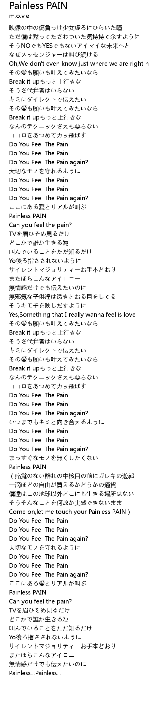 | [03:14.390] | Come on, let me touch your Painless PAIN |