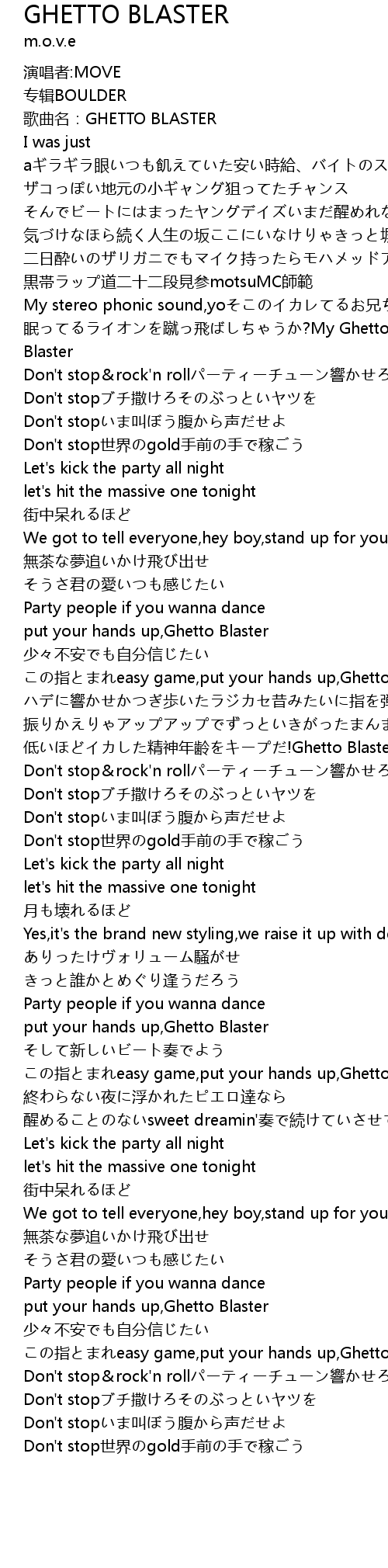 | [01:35.246] | put your hands up, Ghetto Blaster |