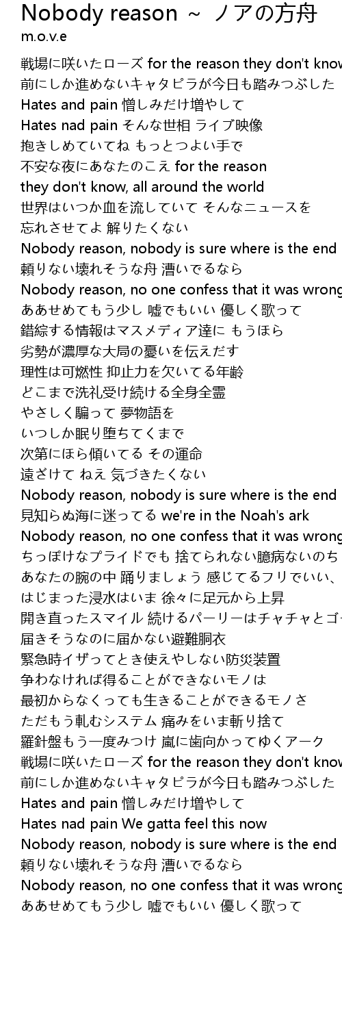 | Song | Nobody reason ~ ノアの方舟 |