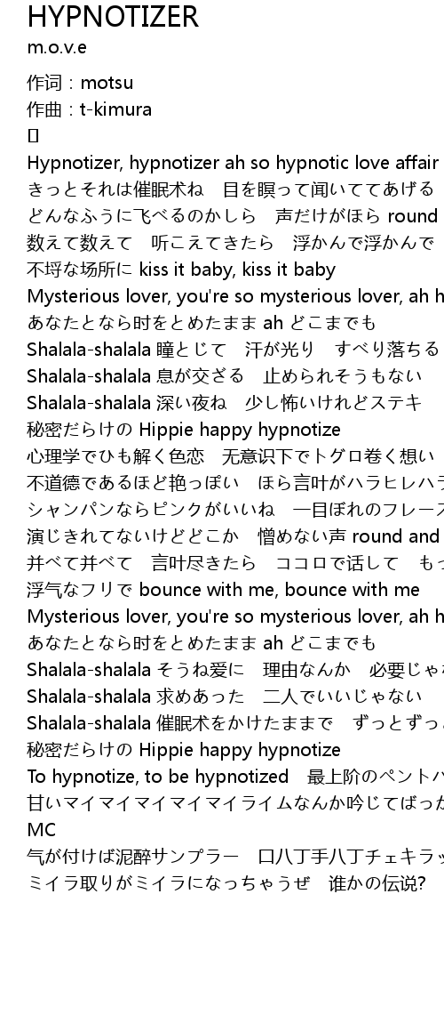 | Mysterious lover, you' re so mysterious lover, ah hypnotizer | |