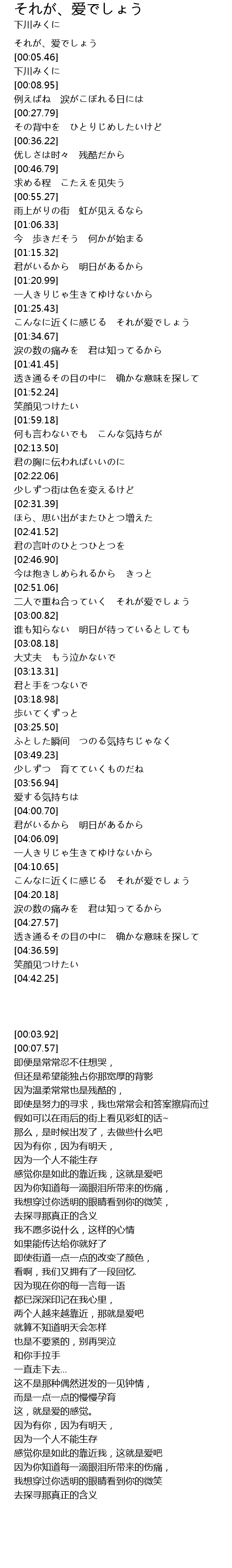 | [00:03.92] | それが、爱でしょう |