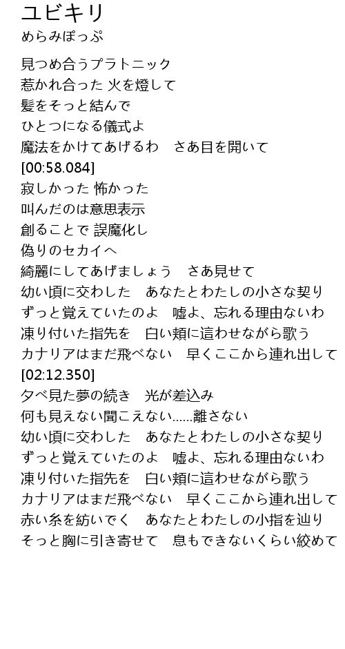 | [03:15.253] | 幼い頃に交わした あなたとわたしの小さな契り |