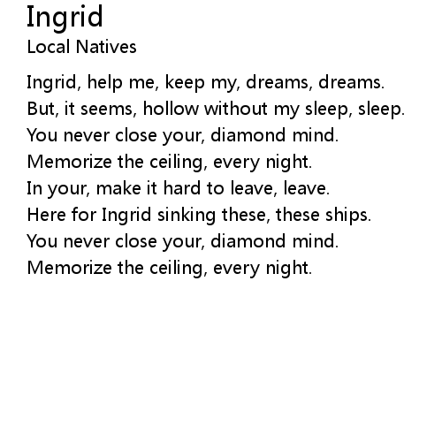 | Ingrid, help me, keep my, dreams, dreams. | |