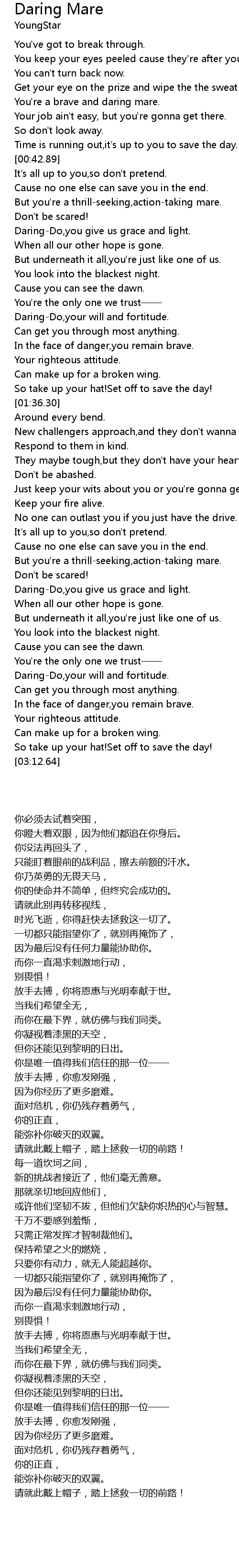 | [02:50.60] | Daring-Do,you give us grace and light. |