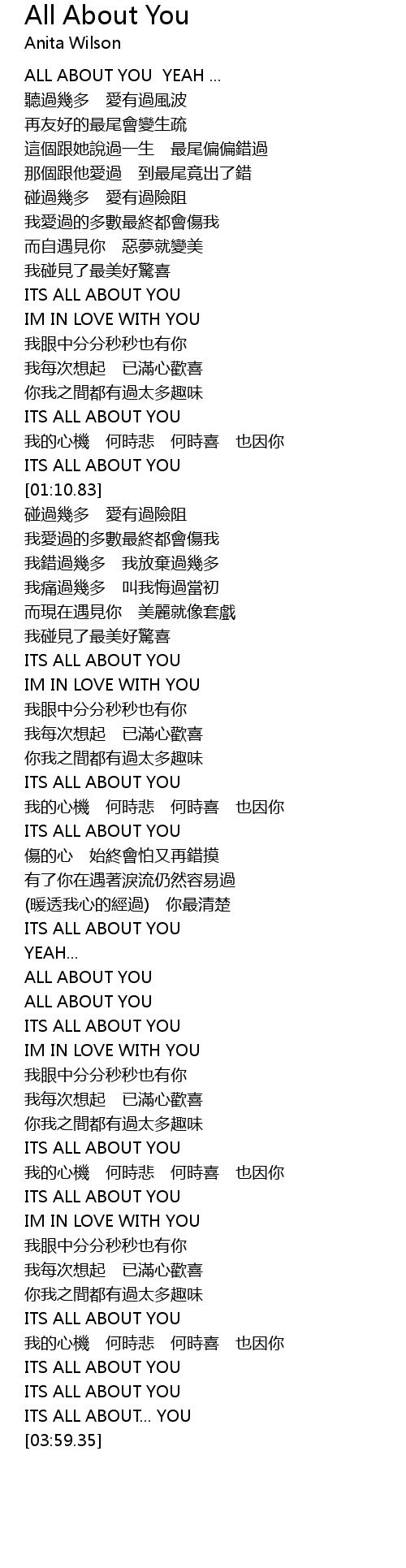 | [00:06.24] | ALL ABOUT YOU YEAH ... |