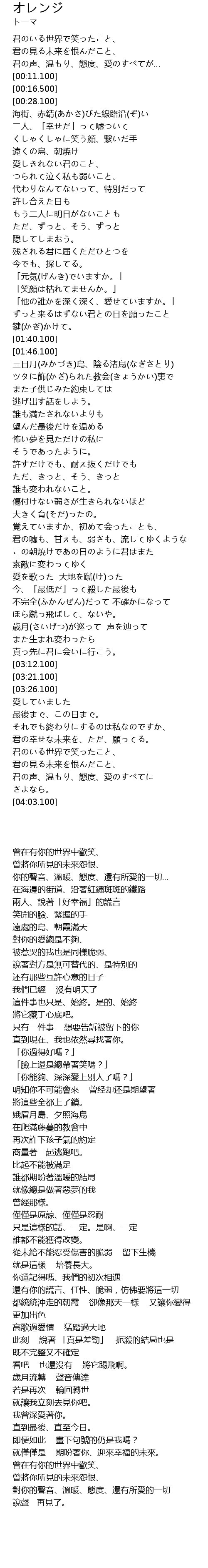 | [03:41.000] | 君の幸せな未来を、ただ、願ってる。 |