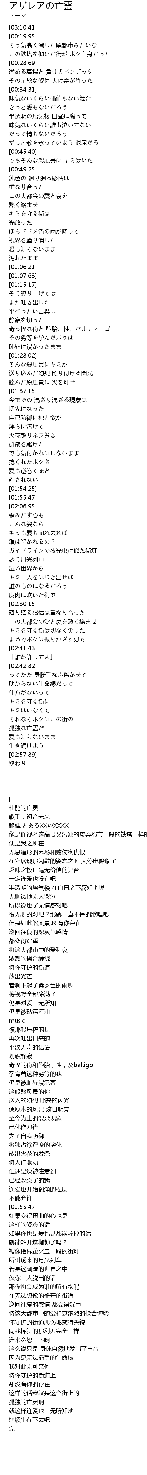 | [00:37.52] | 半透明の蜃気楼 白昼に腐って |