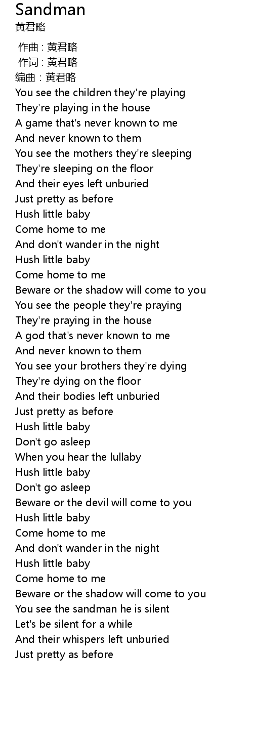 | [03:12.009] | You see the sandman he is silent |