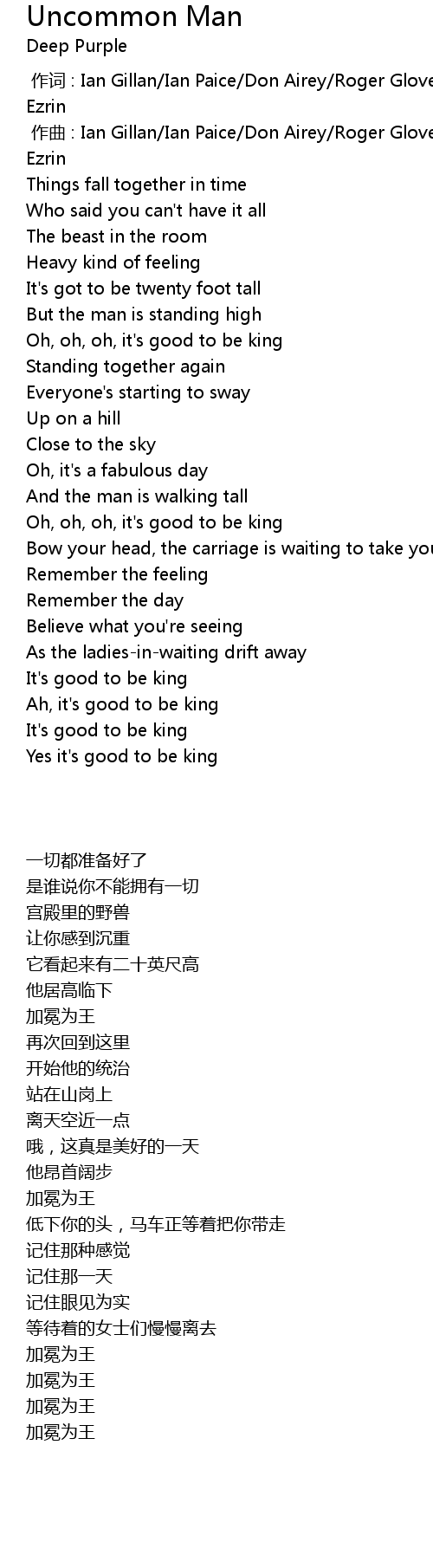 | [00:01.000] | zuo qu : Ian Gillan Ian Paice Don Airey Roger Glover Steve Morse Bob Ezrin |