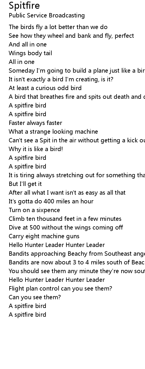 Spitfire Lyrics