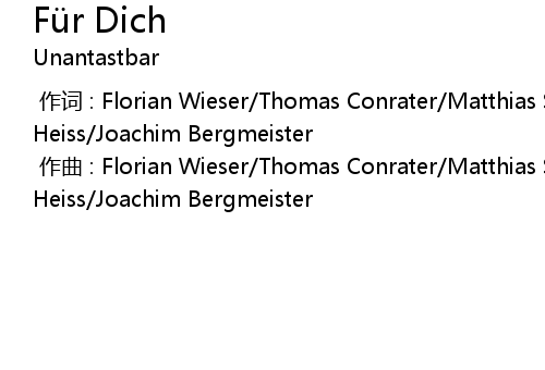 | [00:00.000] | 作曲 : Florian Wieser/Thomas Conrater/Matthias Speranza/Christian Heiss/Joachim Bergmeister |