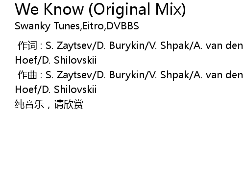| [00:01.000] | 作曲 : S. Zaytsev/D. Burykin/V. Shpak/A. van den Hoef/C. van den Hoef/D. Shilovskii |