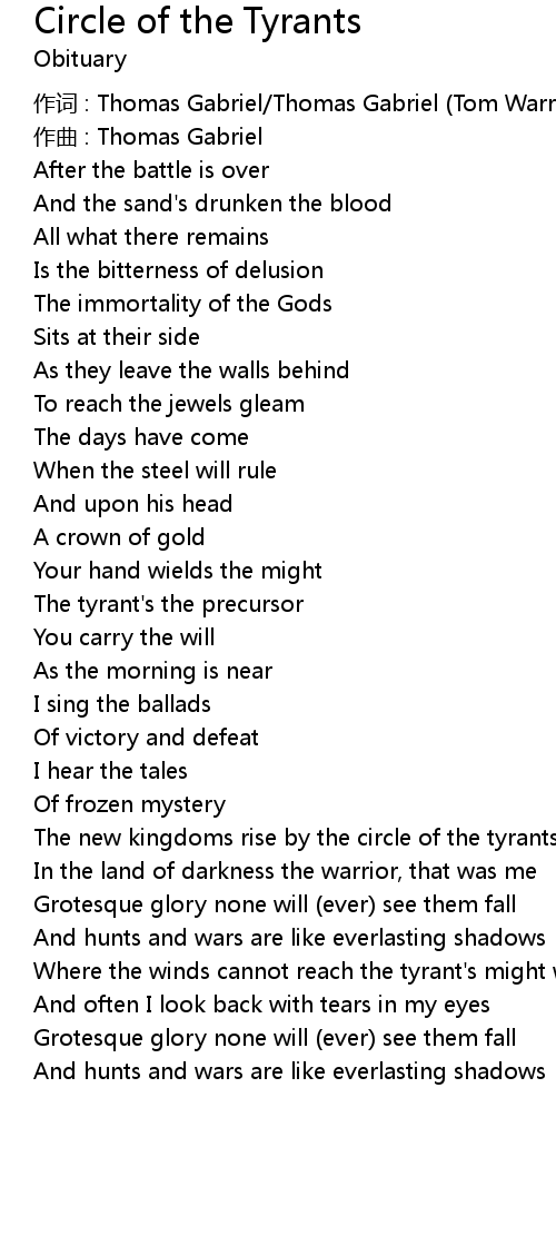 | Song | Circle of the Tyrants |