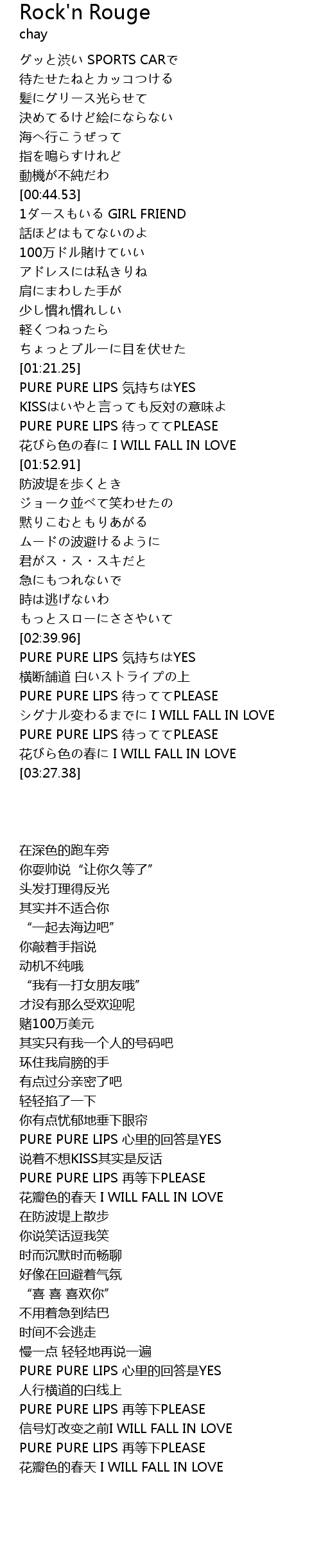 | [01:36.80] | PURE PURE LIPS dai PLEASE |