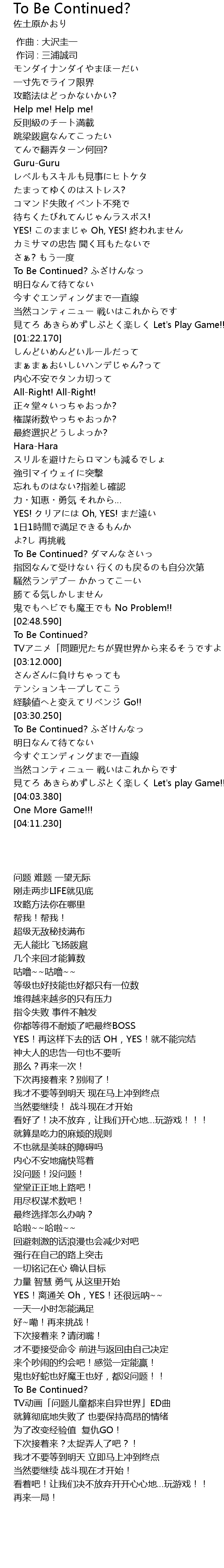 | [02:51.000] | To Be Continued? |