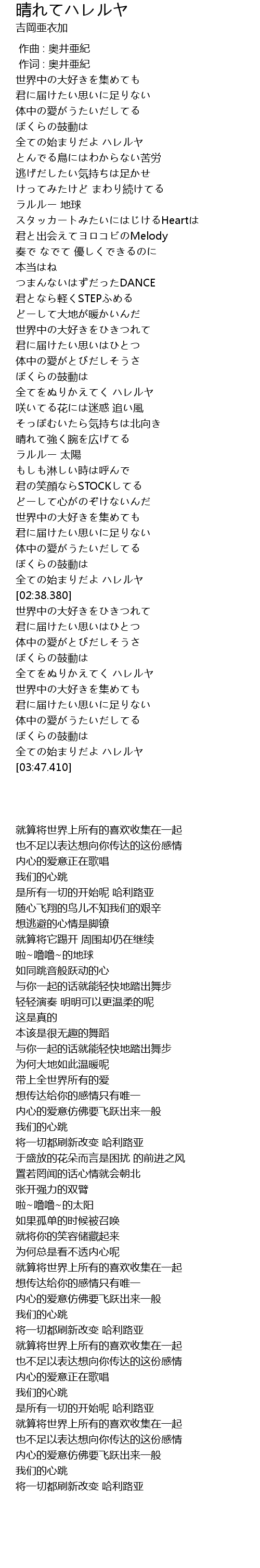 | [03:39.210] | 全ての始まりだよ ハレルヤ |