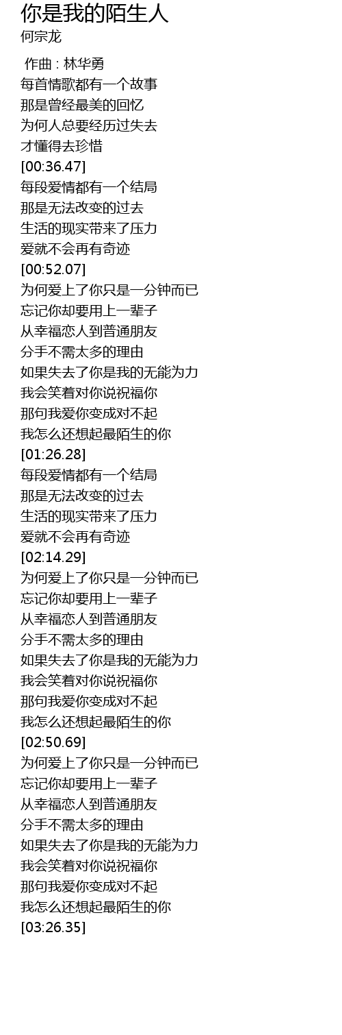 | [02:44.96] | 我怎么还想起最陌生的你 |