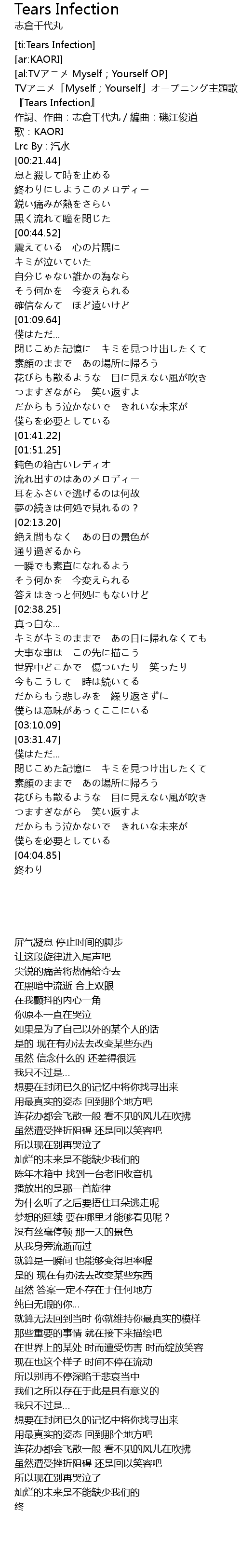 | [00:05.44] | TVアニメ「Myself;Yourself」オープニング主題歌 |
