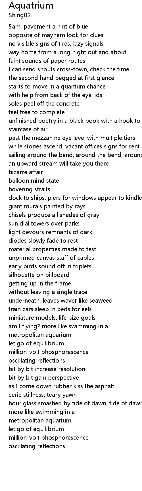 | [03:40.07] | metropolitan aquarium |