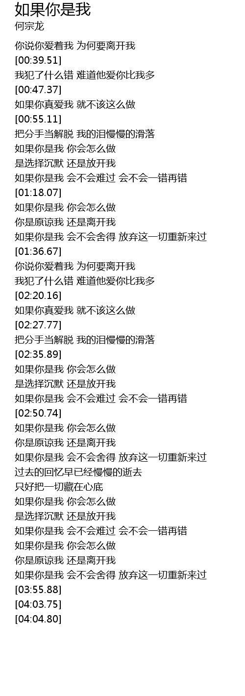 | [03:30.37] | 如果你是我 会不会难过 会不会一错再错 |