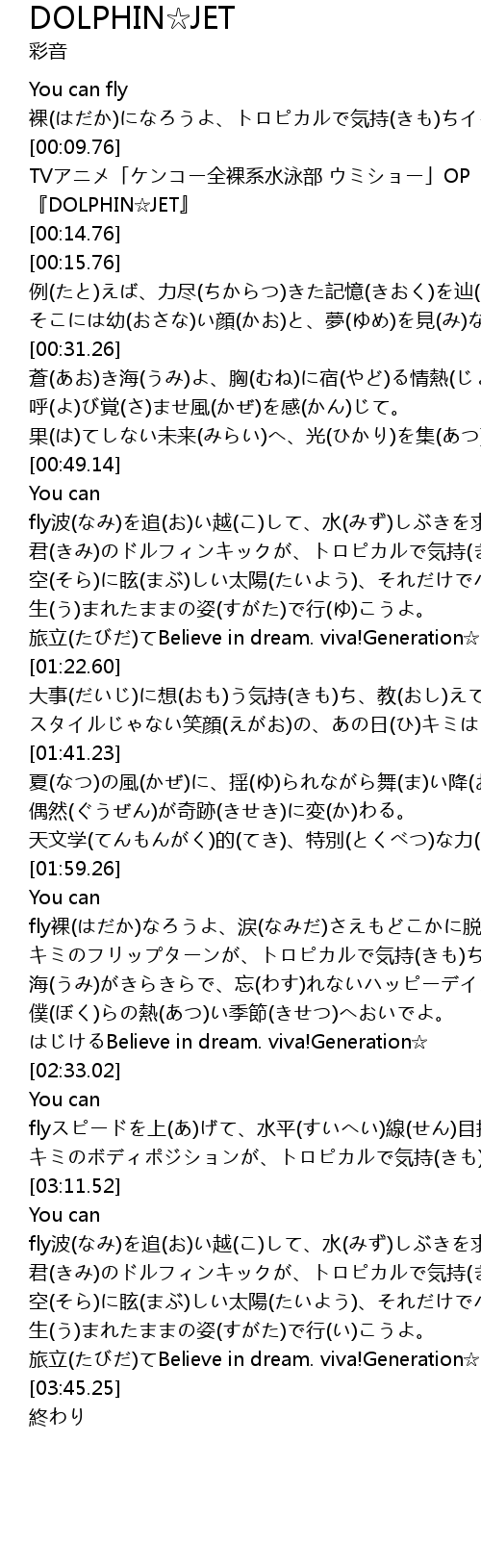| [00:11.76] | 『DOLPHIN☆JET』 |