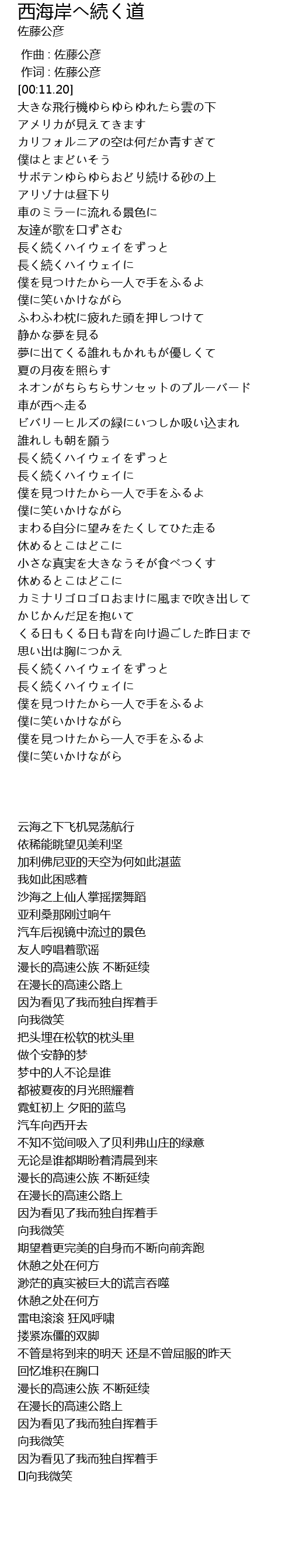 | [02:58.20] | 長く続くハイウェイをずっと |