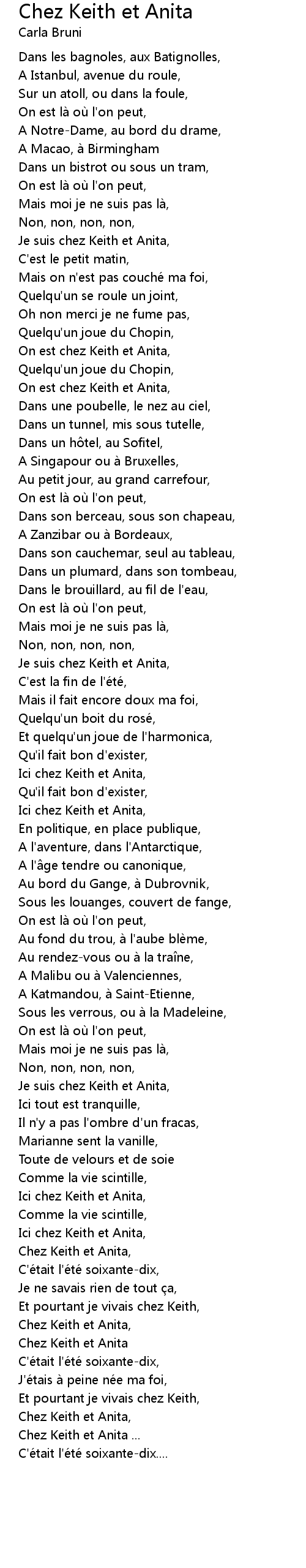 | Song | Chez Keith et Anita |