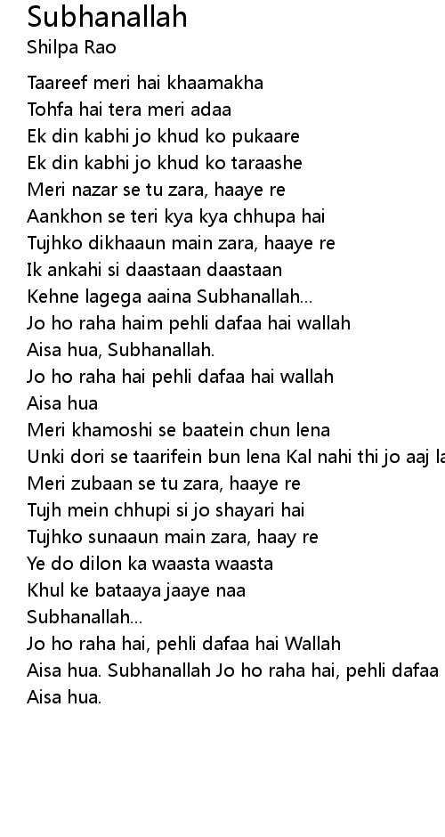 Aisa hua, Subhanallah. |