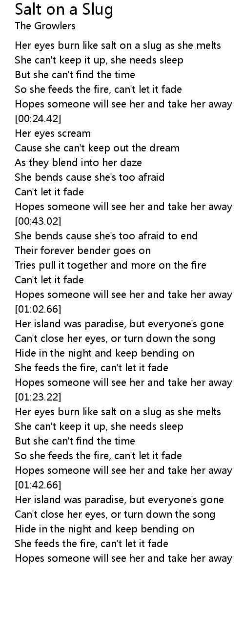 [00:06.19] Her eyes burn like salt on a slug as she melts